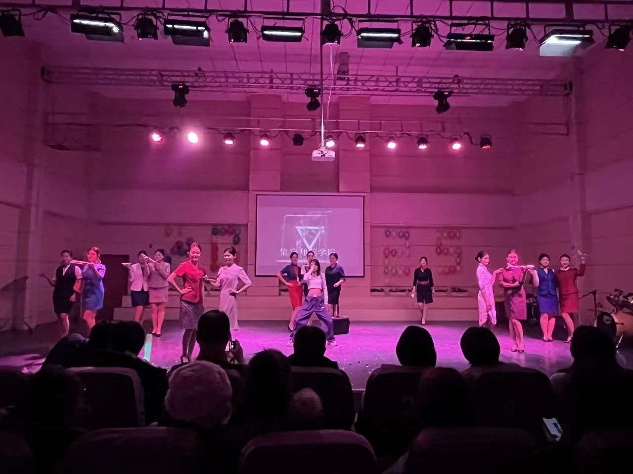 晚会在活力四射的开场舞中拉开帷幕,动感的舞姿瞬间点燃现场气氛同学们的表演大放异彩,为观众呈上一场视听盛宴。在配音环节,同学们凭借扎实的专业能力瞬间将观众带入不同场景,趣味十足;新模走秀中,模特儿们身着时装,迈着自信步伐展现潮流魅力;航空礼仪表演更是吸晴,表演者们身资挺拔,动作优雅规范,举手投足足尽显专业素养,一系列精彩节目让现场氛围持续升温