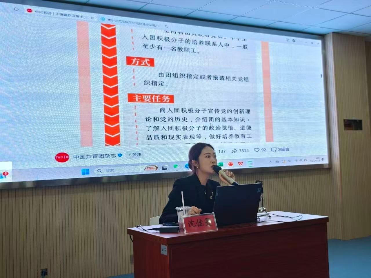 团学办主任沈佳雯详细解读《中国共产主义青年团发展团员工作细则》《beat365在线唯一官网第二课堂实施办法》,引导新生合理规划大学生活,实现专业知识与综合素质的同步提升。