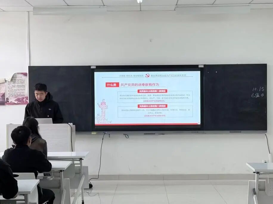 孙硕以“你经得起考验吗”为题,直击党员成长关键问题,引导党员审视自身不足,强化责任意识。宋文发围绕“学党史 强信念 践初心”,结合“红船精神”“脱贫攻坚精神”等内容,用通俗语言解读党的历史经验与理论成果,阐明“中国共产党为什么能”,鼓励党员将学习成果转化为服务行动。李帅以“讲奉献 有作为 做合格共产党员”为切入点,结合班级管理、社团工作等场景,剖析消极心态危害,明确“奉献”“作为”内涵,提出学生党员需以实际行动彰显先锋模范作用,引发在场党员强烈共鸣。