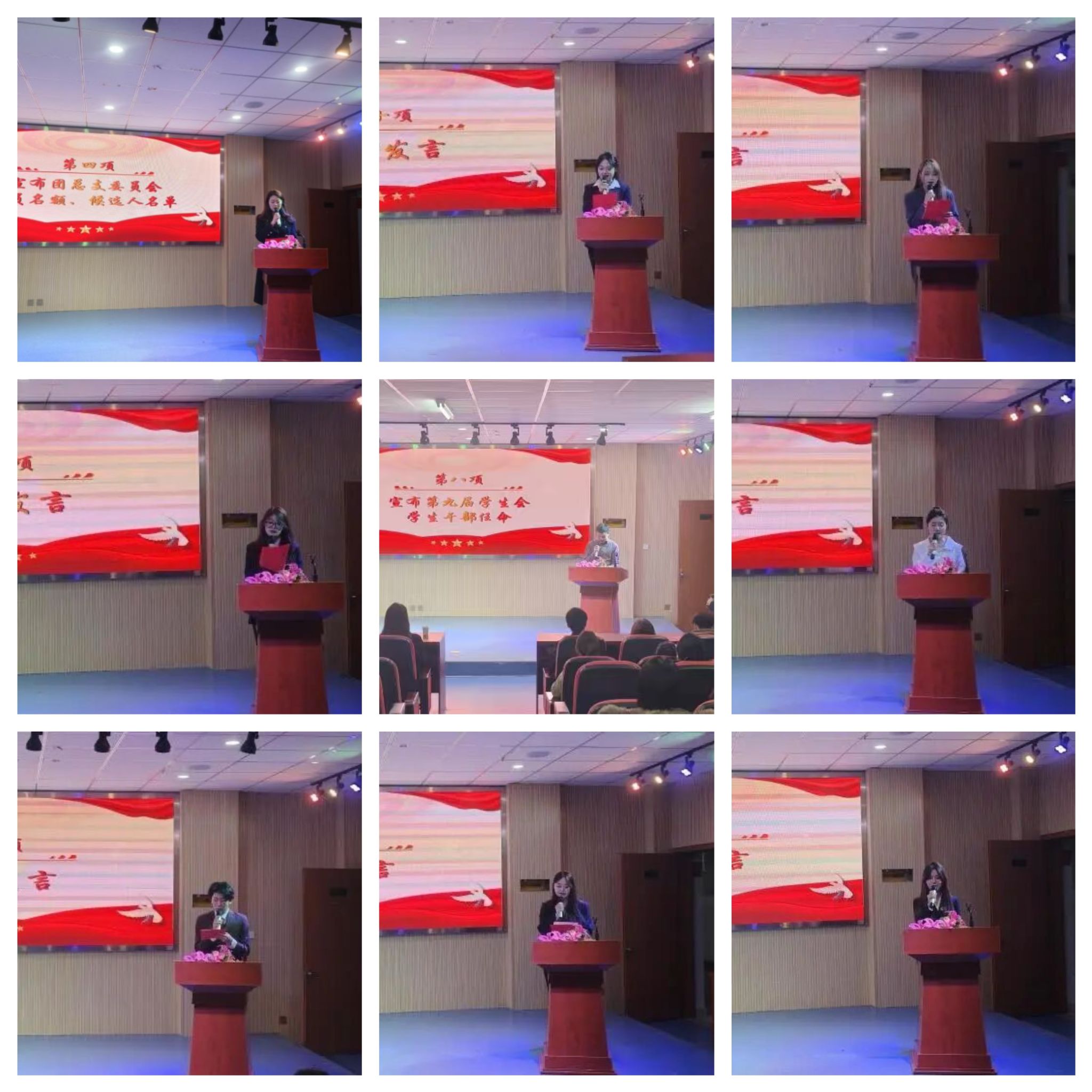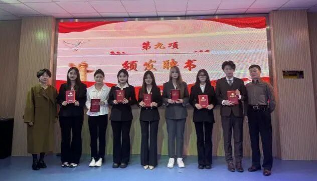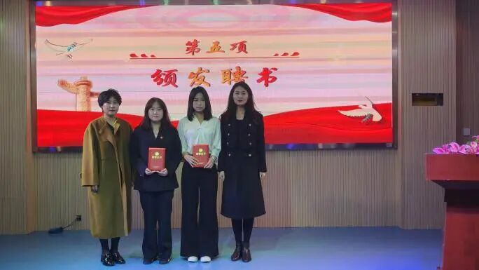 党总支副书记毛慧、学团办主任沈佳雯、辅导员熊进分别为第九届团总支学生会主席团、学生会干部、青年志愿者协会颁发聘书。
