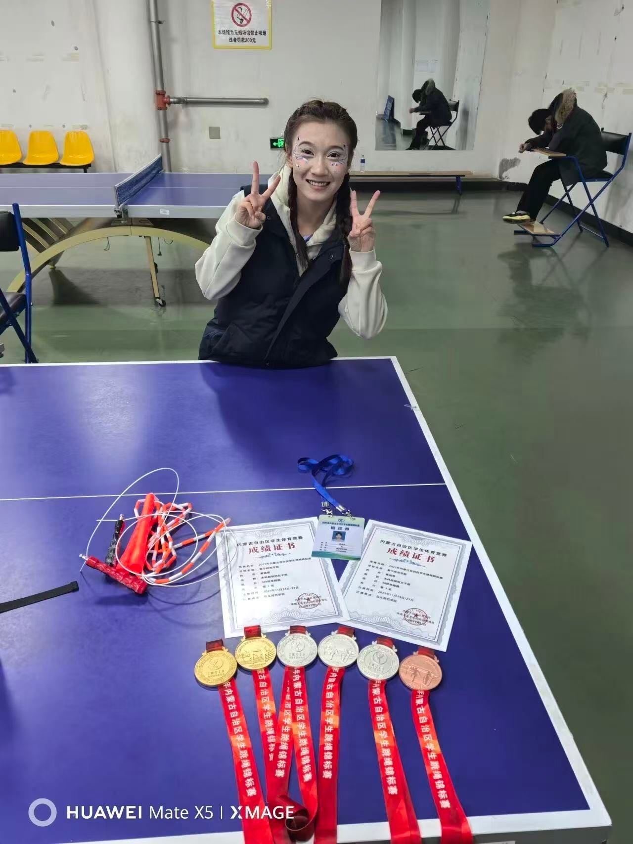当日赛事聚焦单摇核心项目与集体接力赛事,赛程紧凑且竞争激烈。上午率先展开30秒单摇速度比拼,下午依次进行3分钟单摇耐力较量及本科超级组4×30秒交互绳接力赛,三项赛事从不同维度考验选手的综合运动素养。我院学子夏瑞雪代表学校参赛,一人报名两项个人项目与一项团体项目,凭借扎实的训练功底与稳定的赛场发挥脱颖而出。在30秒单摇速度赛中,她与16名顶尖选手同台竞技,以精准的节奏把控斩获亚军;3分钟单摇耐力赛中,面对12名实力对手的强势挑战,她顶住体能与心理双重压力,高效发挥勇夺冠军;在随后的集体项目中,她与队友默契配合,斩获本科超级组4×30秒交互绳接力团体亚军,一日之内收获“一冠两亚”的亮眼战绩。