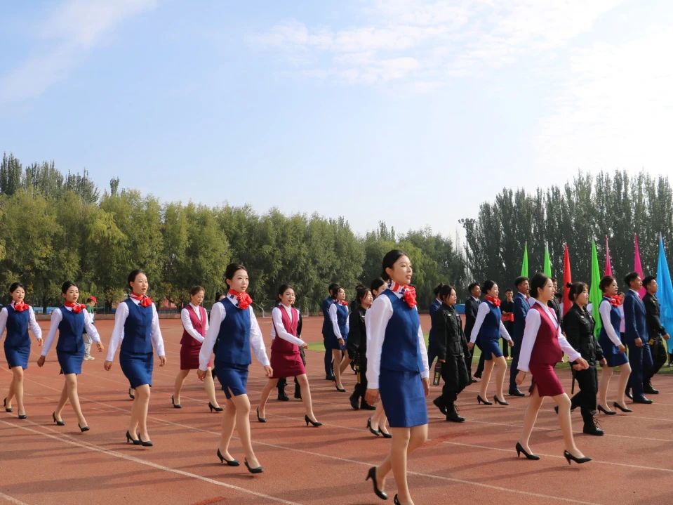 伴随着激昂的《运动员进行曲》,国旗护卫队护着国旗,迈着矫健的步伐,庄严入场。现代服务代表方队以挺拔的身姿、整齐的步伐、响亮的口号,向全校师生展现现服学子昂扬向上的精神风貌和积极向上的竞技状态。精彩的礼仪操《逐梦飞翔》不仅展现出我院学子的热情和才华,更是青春的蓬勃与朝气。