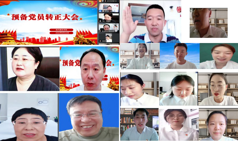 为做好发展党员工作,进一步加强党员队伍建设,2022年6月22日,现代服务学院学生党支部通过线上会议的方式召开了支部党员大会,讨论伊欢等同志预备党员转正事宜。参会人员有入党介绍人:李荣利、王汉君、李贞、黄中、杨宗龙、邢书宇、董宇;教师党员代表:睢晓君、郭凯;预备党员10名;学生党支部全体成员。会议由学生党支部书记杨宗龙主持。