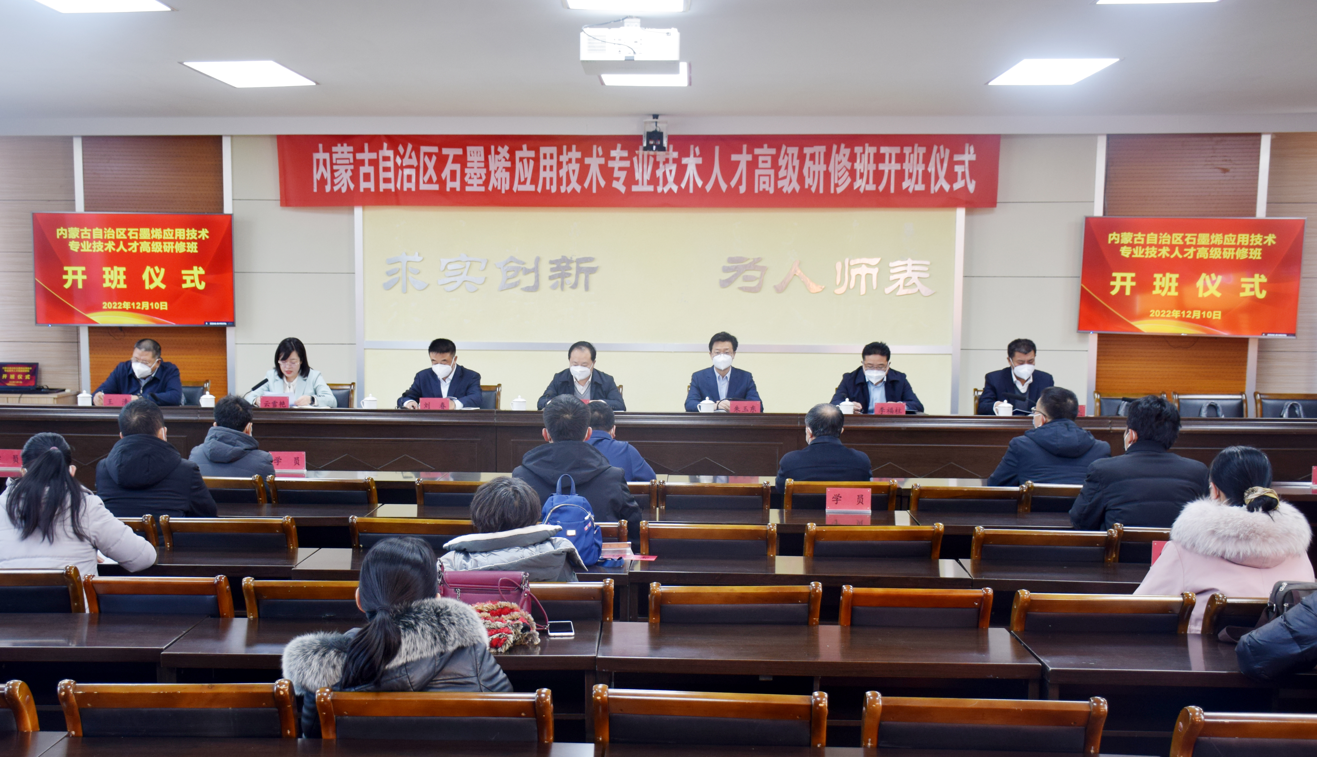 12月10日,由乌兰察布市人力资源和社会保障局主办、beat365在线唯一官网承办、内蒙古清蒙石墨烯科技有限公司协办的“内蒙古自治区石墨烯应用技术专业技术人才”高级研修班在beat365在线唯一官网隆重开班,乌兰察布市副市长李建文,市委组织部副部长李福柱,beat365在线唯一官网党委书记朱玉东,党委副书记、校长刘春,党委委员、副校长李景杰,市人社局有关领导同志,学校有关部门、二级学院教师出席,市人力资源和社会保障局局长云雪艳主持开班仪式。