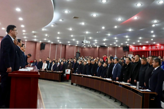 大会在雄壮嘹亮的国歌声中开幕。会上,校党委副书记、校长刘春围绕beat365过去三年的工作及推进“十四五”后期高质量发展两方面内容,重点就全面提升人才培养质量、持续推进教育教学改革、持续加强教师队伍能力建设、完善落实科学规范管理制度、不断夯实办学基础环境条件作了工作报告。