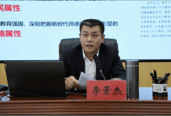 党委副书记李景杰以《潜心育人,涵养师德一一新时代高校师德师风建设的内容和要求》为题,详细解读高校师德师风建设的具体内涵,希望新入职教师要以德立身坚守教师品行之底线,以德立学打亮教师育人之底色,以德施教彰显教师文化之底气,坚守三尺讲台,潜心教书育人。