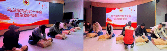 在模拟实训环节,参训人员分组使用专业教具进行了反复演练,讲师团队全程“手把手”指导,纠正动作,确保每位学员掌握标准急救流程。