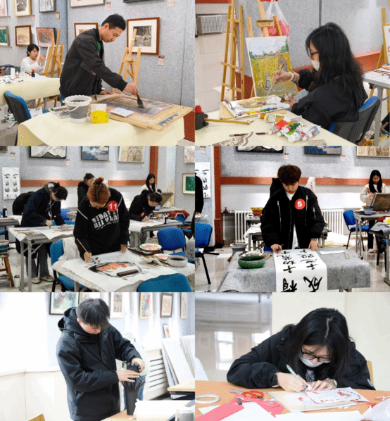 美术学专业展示分为必选(书法、绘画)与自选两大板块。必选项目中,书法绘画作品令人眼前一亮。书法赛区内,篆隶的古朴厚重、行草的飘逸洒脱跃然纸上,选手们挥毫泼墨,以经典诗词为载体,展现传统笔墨韵味;绘画区域,水彩风景的清新意境、油画人物的生动神态,彰显出学生扎实的造型能力与色彩感知力。自选项目竞赛中,选手们将扎实的技法与创新的艺术语言结合,作品既有对经典的传承,也有对时代的回应。