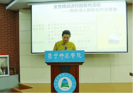 乌兰察布市作家协会主席闫曼丽致辞,强调文学在传承文化、启迪心灵方面的独特作用,鼓励师生们多阅读多创作,用文字记录时代、书写青春,让乌兰察布文学薪火相传、生生不息。