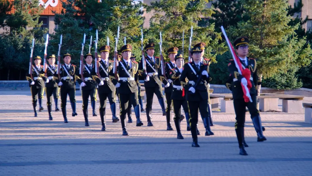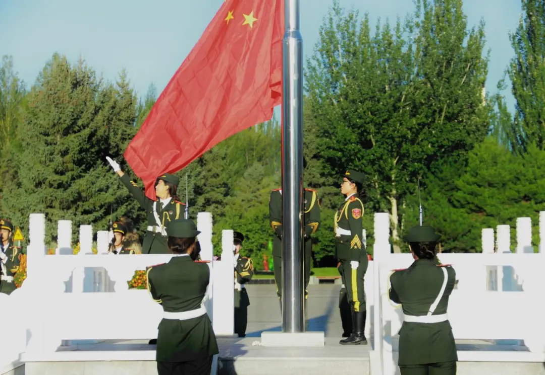 迎着第一缕朝阳,升旗仪式正式开始。校国旗护卫队迈着铿锵有力、整齐矫健的步伐走向升旗台。全体人员神情庄重,面向国旗肃然而立,随着一声“升国旗、奏国歌”的口令,国旗迎风招展,国歌慷慨激昂,衷心祝愿伟大祖国更加繁荣昌盛,祝愿人民生活更加幸福美好。