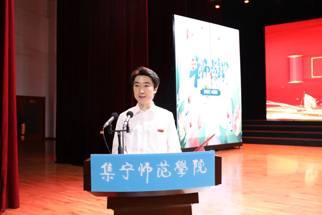 学生代表李想发言。她代表全校学生表达了对老师的感恩之情,并表示未来定会将这份感动化为前进的动力,在求学道路上勤奋钻研、勇于探索,努力成长为有理想、敢担当、能吃苦、肯奋斗的新时代青年,用实际行动回报老师们的谆谆教诲。
