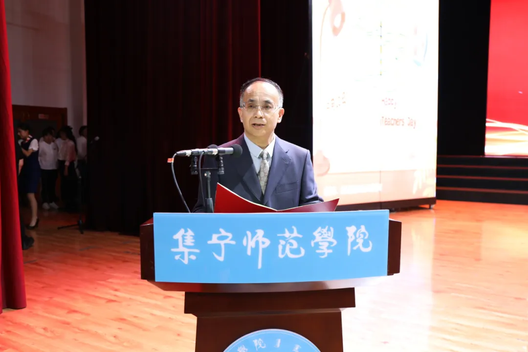 张宝成发表了热情洋溢的致辞。他代表学校向全校广大教职工致以最诚挚的节日问候,向无私奉献、辛勤耕耘受到表彰的优秀教师表示衷心感谢和热烈祝贺!他指出,过去的一年,学校坚持立德树人根本任务,锚定晋位升级发展目标,各项事业在改革中蓬勃发展,在创新中全面提升。全体教师牢记“为党育人、为国育才”的神圣使命,在各自的岗位上春风化雨、润物无声,为学校事业发展做出了贡献。