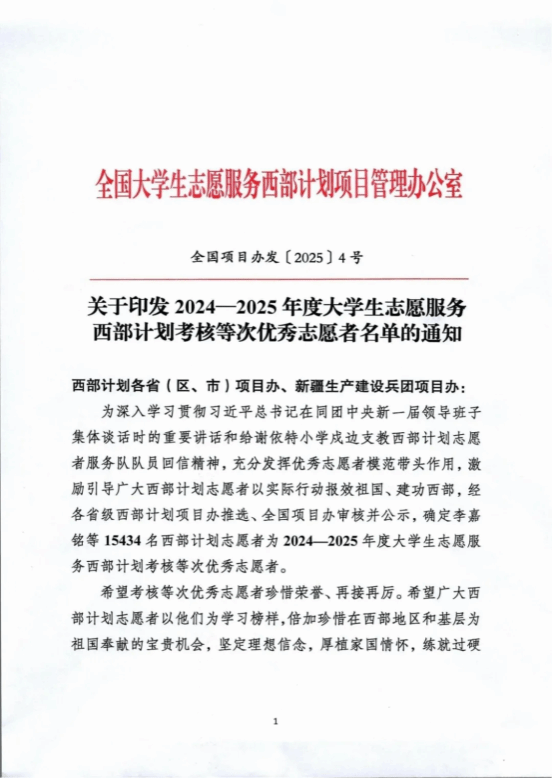 近日,全国大学生志愿服务西部计划项目管理办公室公布了2024—2025年度大学生志愿服务西部计划考核等次优秀志愿者名单,beat36531名志愿者凭借出色的表现、扎实的工作和无私的奉献,荣获“优秀志愿者”称号。这不仅是他们个人的荣耀,更是beat365在线唯一官网的骄傲,彰显了beat365在志愿服务领域的卓越成果和育人成效 !