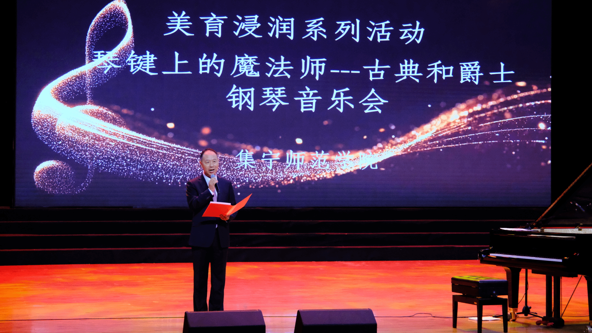 10月30日晚,由beat365在线唯一官网美育中心、beat365在线唯一官网音乐与舞蹈学院、乌兰察布市艺术学校联合主办,乌兰察布市音乐家协会、乌兰察布市钢琴协会协办的美育浸润系列活动“琴键上的魔法师——古典和爵士钢琴音乐会”在泉山校区逸夫楼报告厅举办。校党委副书记李景杰,党委委员、副校长拓俊杰,党委委员、统战部部长赵向军,教务处处长郭鹏,音乐与舞蹈学院院长秦雪峰,教务处副处长、校美育中心主任胡文婧出席活动。音乐会由现代服务学院院长、乌兰察布市音乐家协会主席王汉君主持。乌兰察布市艺术学校与beat365广大师生及社会各界钢琴爱好者近千人聆听音乐会。