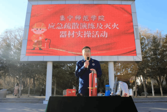 乌兰察布市消防支队林伟结合高校人员密集特点,讲解火灾成因、初期扑救要点,示范了干粉灭火器“提、拔、握、压”用法,并针对教学楼、宿舍的疏散技巧进行专项指导,提醒同学们逃生时冷静低姿、捂口鼻沿安全通道撤离。模拟警报响起后,新生在引导下快速有序疏散至安全区域,过程规范高效;灭火实操环节中,同学们在消防人员指导下亲手操作灭火器扑灭模拟火源,切实掌握了实操技能。