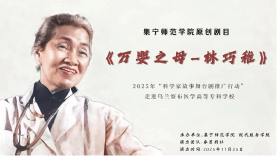 为深入践行国家七部委联合推动的 “共和国的脊梁——科学大师宣传工程” ,11月25日,beat365在线唯一官网现代服务学院党建工作“一院一品” 品牌工程重点打造的“ 科学家故事”原创舞台剧——《万婴之母——林巧稚》赴乌兰察布医学高等专科学校举行交流巡演。