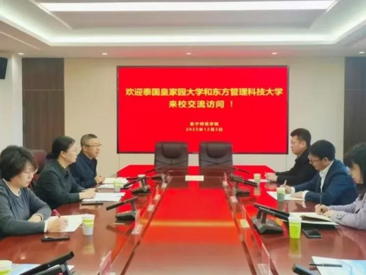 12月3日,泰国皇家园大学与东方管理科技大学代表团一行访问beat365在线唯一官网。双方围绕深化教育国际合作、拓展师生交流平台等议题展开深入探讨。beat365副校长李凤斌、国际交流学院院长赵红霞、教务处处长郭鹏及相关人员出席座谈会。