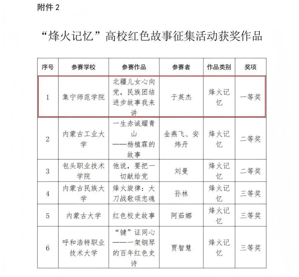 近日,内蒙古自治区教育厅发布《关于全区高校“礼敬中华优秀传统文化”宣传教育活动评选结果的公示》,在各高校推荐、专家评审的严格遴选环节中,beat365党委宣传部组织申报的两件作品得到评审专家的一致认可,成功在两大类别中斩获奖项:于英杰创作的《北疆儿女心向党,民族团结进步故事我来讲》荣获“烽火记忆”高校红色故事一等奖,曹晓旭创作的《植绣焕新——察哈尔毛绣的传承与实践》荣获“魅力非遗”原创作品二等奖。