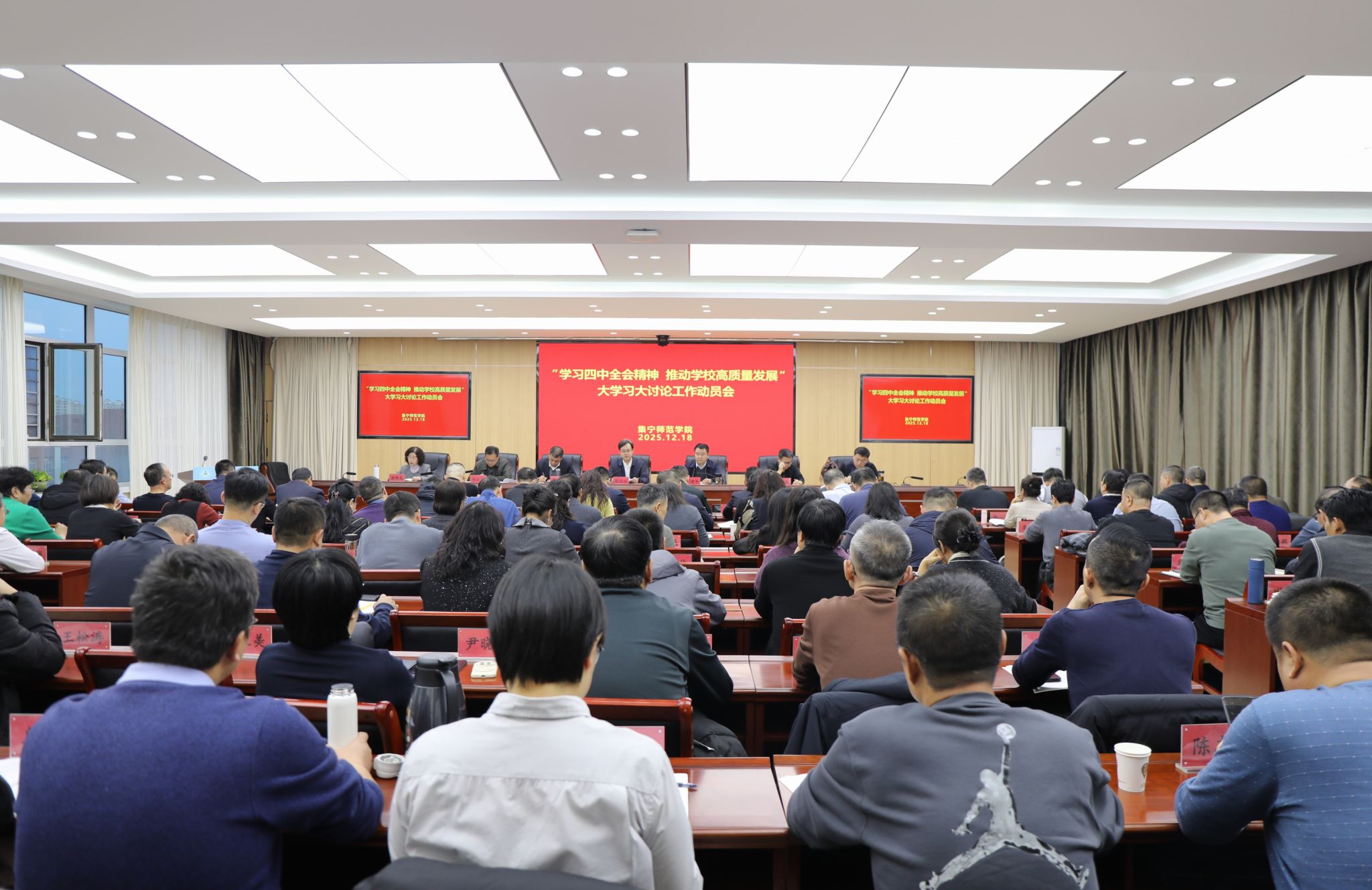 此次会议既是一次全面深入的动员部署,也是一次凝聚共识、激发干劲的誓师大会,标志着“学习四中全会精神 推动学校高质量发展”大学习大讨论进入全面深化、攻坚提升的关键阶段。按照学校统一部署,本次大学习大讨论活动为期三个月,将围绕明确学校办学定位、加强教师队伍建设、提升教学科研水平、提高人才培养质量、推动治理体系和治理能力现代化等十大主题持续开展。活动期间,校领导将分别牵头深入各部门、二级学院进行调研指导;各部门、二级学院将通过理论中心组学习、专题学习研讨会等形式,围绕活动主题、结合工作实际,组织全体教职工开展大学习大讨论,为学校科学编制“十五五”发展规划、推动各项事业高质量发展贡献智慧和力量。