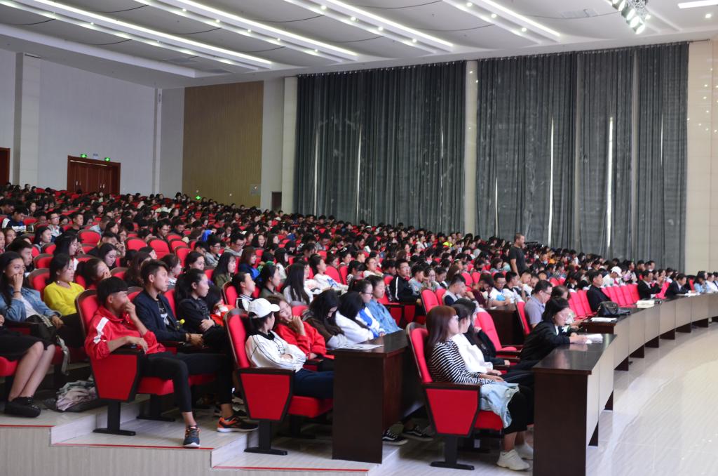 党委副书记赵海忠主持报告会。中文系、政史系、英语系、数学系、乘务系共900多名新生参加了报告会。