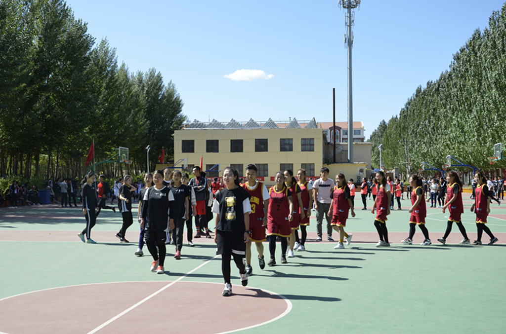 随着一声哨响,比赛正式开始。赛场上,队员们本着“友谊第一,比赛第二”的原则进行激烈而又精彩的争夺。中场休息时,乘务系的啦啦队为队员加油助威。除此之外,比赛现场还有统一身着黄色服装的志愿者,他们是来自篮球协会的会员。比赛过程中,志愿者及时为参赛队员、裁判员、记录员以及观众提供饮用水,维持赛场秩序,为比赛的顺利进行而提供保障。
