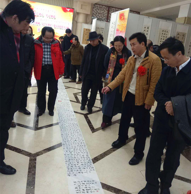 观展中,到会的领导和嘉宾对展出作品作了点评,对这种以文艺的形式宣传十九大表示赞扬。最后,乌兰察布市书法协会主席梁能伟先生现场展出了长卷《蒙古秘史》,充分展示了书法技艺经久不衰的艺术魅力。