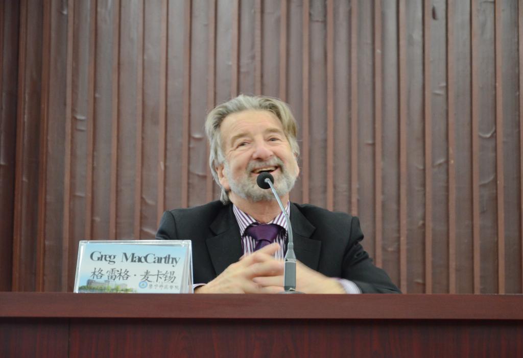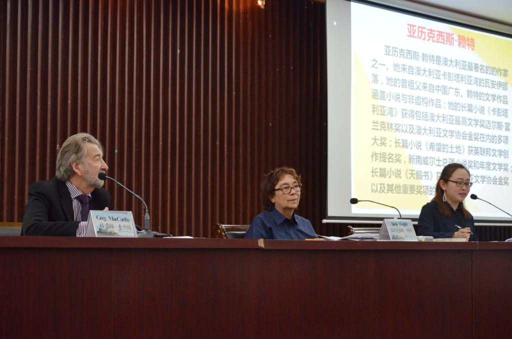 参加讲座的嘉宾有澳大利亚驻华大使馆政治处一等秘书包安琪女士,西澳大利亚大学教授、北京大学澳大利亚研究中心讲习教授格雷戈瑞·麦卡锡,作家、内蒙古文联前党组书记、文联副主席李魁,内蒙古文学评论家耿瑞,包头师范学院教授、文学评论家王素敏,乌兰察布市原人大副主任、乌兰察布市作家协会主席、作家王玉水,资深翻译家、北京外国语大学客座教授、澳大利亚政府奖获得者李尧,澳大利亚驻华大使馆工作人员李潇娇。外国语学院和文学院的部分师生聆听了讲座。讲座由外国语学院院长闫晓云主持。