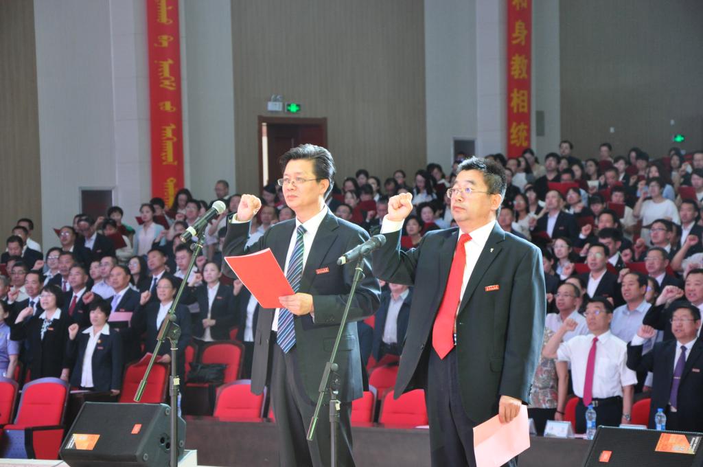 誓师大会在全体教职工齐唱beat365在线唯一官网校歌《桃李满天下》雄壮的歌声中圆满落幕。誓师大会内容丰厚,意义重大,特别是在学校转型发展的关键时期,引导广大教职工以“全国优秀教师”黄大年为楷模,以德立身、以德立学、以德施教、以德育德,为推动全区及乌兰察布教育事业健康发展、促进地区经济社会建设,打造祖国北疆亮丽风景线,为把学校建成底蕴深厚特色鲜明的应用型师范大学作出新的更大贡献!