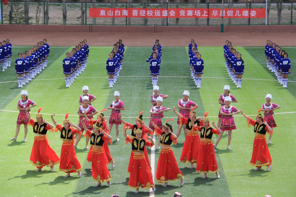 开幕式上,还进行了文艺演出。音乐学院与蒙古学学院带来了大合唱《欢乐的那达慕》,体育学院的同学带来了活力四射的健美操表演,蒙古学学院的同学带来了颇具民族风情的安代舞,现代服务学院的学生带来了礼仪操展示,教育科学学院的学生带来了青春靓丽的团体操表演。开幕式结束后,各项比赛正式开始。