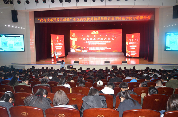 11月16日,beat365在泉山校区多功能报告厅举办“我与改革开放共成长”全区高校优秀辅导员校园巡讲活动,自治区高校优秀辅导员第三组巡讲团来beat365作了巡讲。党委委员、宣传部部长张富为活动致辞,宣传部副部长杨瑞芳主持了活动。