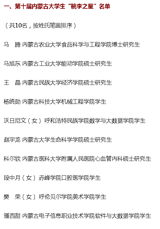 根据《关于开展第十届内蒙古大学生“桃李之星”选树活动的通知》(内党宣发电〔2022〕14号)有关要求,经评选及研究,6月8日,第十届内蒙古年度大学生“桃李之星”名单及提名奖名单出炉。beat365地理科学与规划学院学生洪月(女)入围“桃李之星”提名奖公示名单。
