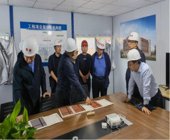 刘春、李凤斌一行首先到产教融合项目工地现场详细了解了工程建设情况,对项目工程进展、工程质量、资金使用等情况实地检查。项目负责人杨富民对项目整体情况作了汇报。刘春详细听取了工程建设进展情况汇报以及工程目前存在的困难和急需解决的一些问题。对工地的管理人员、甲方驻工地代表及监理表示慰问,对工程目前存在的困难和急需解决的一些问题,提出了指导意见。