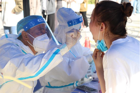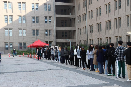 核酸检测现场,所有师生及工作人员佩戴口罩,严格依照排队、扫码、采样、发放证明贴纸、返回宿舍楼的流程组织核酸检测秩序,全力配合工作人员样本采集。同学们保持一米安全距离,主动配合各项防疫防控工作要求。工作高效推进,现场秩序井然,全校师生上下一心,积极地配合这场核酸筛查工作。