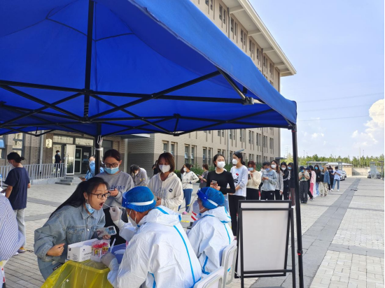检测期间,各院老师在现场维持秩序,防止造成人员聚集。全校师生积极配合防疫工作要求,全员佩戴口罩,按照排队、扫码、取样、领取贴纸、返回宿舍楼的流程进行检测,现场采样工作高效有序地进行。