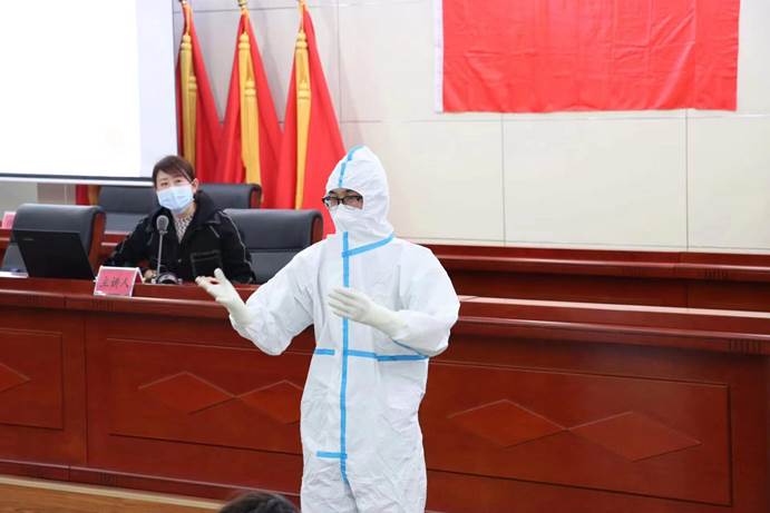 谢晶莹从“新冠病毒核酸鼻、咽拭子标本采集”、“穿脱防护服的流程”两个方面进行培训。强调了“七步洗手法”和正确佩戴口罩的重要性,并进行现场演示。在培训过程中,谢晶莹对如何正确规范穿脱防护服,规范采集部位、如何与被采集者配合、标本送检要求等实际采样工作中容易碰到的问题和难点一一作了详细讲解,确保每名参培人员都能正确、规范掌握标准的核酸采集流程。