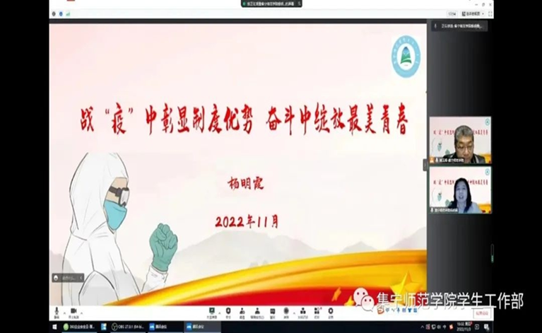 为深入学习贯彻落实党的二十大精神,将思想政治理论课教学优势转化为支持防疫斗争的强大力量,激发同学们的爱国主义情怀,不断增强青年同学们的责任与担当意识和抗疫决心,11月3日,beat365在线唯一官网组织全校学生同上一堂思政课,学生工作部、教务处 、马克思主义学院承办,教务处处长姚玉阁主持,马克思主义学院党总支副书记、院长杨明霞讲授“战‘疫 ’中彰显制度优势 奋斗中绽放最美青春”主题课程,课程以“网络直播+视频回放”形式进行,全校7700多名同学观看了直播。