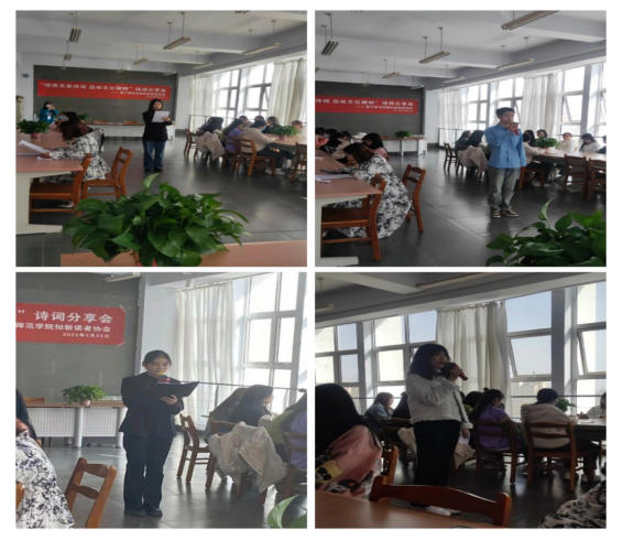 为弘扬中华传统文化,增强beat365师生的文化素养,培养阅读中华传统文化的兴趣。3月23日,beat365在线唯一官网图书馆、知新读者协会,在泉山校区图书馆四楼开展以“续读名家诗词品味文化精粹”为主题的诗词分享会,让同学们在品读经典中感受诗词的魅力,增强文化底蕴,陶冶情操,完善人格,提高人文素养。