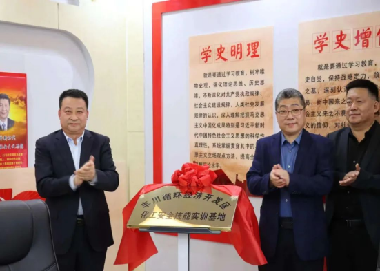 座谈会后,双方签订战略合作框架协议并为化工安全技能实训基地揭牌。