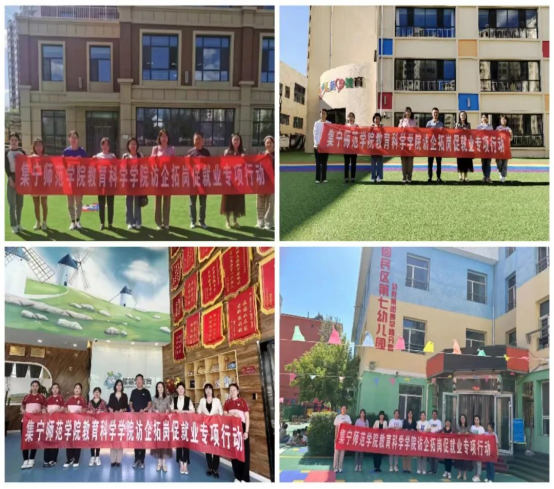 为落实教育部关于高校毕业生就业工作的要求,拓宽毕业生就业渠道,推动2023届毕业生就业,6月13、14日,beat365教育科学学院组织教师赴集宁区第十五幼儿园、第七幼儿园、呼和浩特市蓝莓果教育、启迪幼儿园、回民区第七幼儿园赛罕路分园、回民区第六幼儿园攸攸板分园,进行走访调研和座谈交流,深入推进“访企拓岗促就业”专项行动。