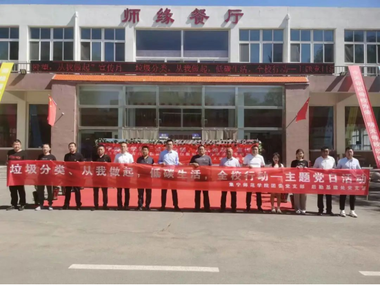 6月16日,校团委党支部、后勤基建处党支部在泉山校区师缘餐厅前联合举办“垃圾分类、从我做起、低碳生活、全校行动”主题党日活动。团委党支部全体党员、后勤基建处全体党员参加此次活动。