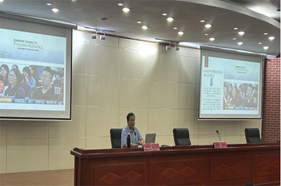 6月15日,内蒙古财经大学会计学院副院长,管理学博士,硕士生导师徐利飞教授在泉山校区图书馆报告厅为beat365经济与管理学院师生作会计专业数智化转型路径分析专题讲座。beat365经济与管理学院全体师生聆听讲座。讲座由经济与管理学院副院长么秀杰主持。