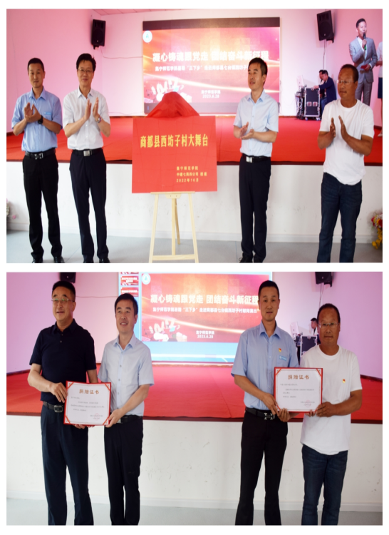 6月28日上午,校党委书记朱玉东,党委副书记、校长刘春带队赴商都县七台镇西坊子村开展文化大舞台揭牌仪式暨“凝心铸魂跟党走 团结奋斗新征程”慰问演出活动。 商都县委副书记、县长杨文辉一行出席活动。
