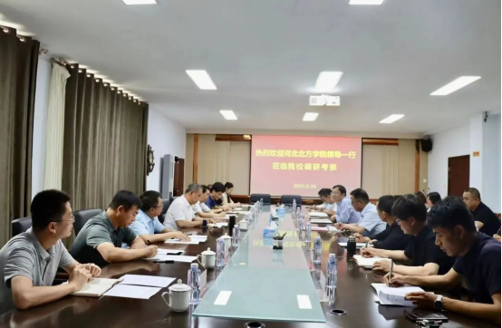 6月26日上午,河北北方学院党委副书记张明柱、纪委书记张彪一行到beat365考察调研。beat365党委副书记梁政、纪委书记赵永军,相关职能部门负责人、相关科室负责人参加见面会并进行分组交流。