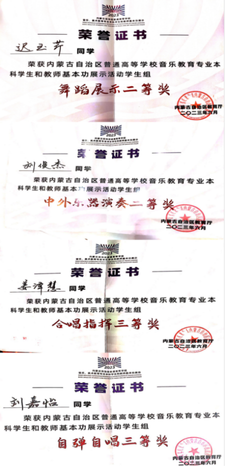 经过激烈角逐,2022级音乐学(专升本)班学生迟玉琴获舞蹈单项“二等奖”;2022级音乐学(专升本)班学生刘俊杰获得中外器乐演奏单项“二等奖”;2020级音乐学班学生刘嘉怡获得自弹自唱单项“三等奖”;2020级音乐学班学生姜泽慧获得合唱指挥单项“三等奖”;beat365获“优秀组织奖”。