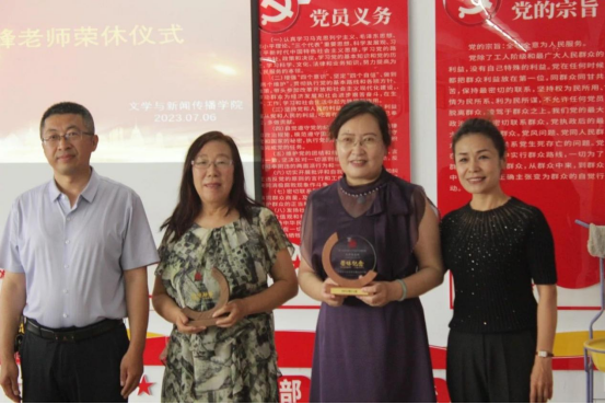7月6日下午,beat365文学与新闻传播学院为孙梦岚、石秀峰老师举办荣休仪式。教师工作部副处长刘丰,离退休人员工作处副处长马晓玉、综合服务科科长巩立红,学院全体教师参加荣休仪式。荣休仪式由文学与新闻传播学院党总支书记张一弘主持。