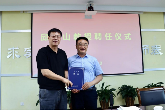 报告结束后,刘春为邱介山教授颁发了石墨烯研究院学术委员会主任聘书。