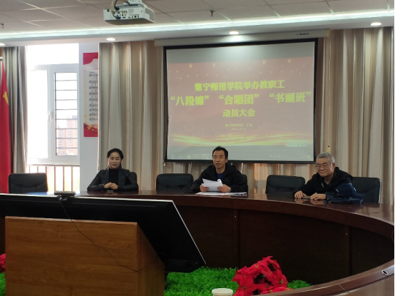 为秉持传承和弘扬中华传统书画、音乐艺术,提升广大教职工的艺术修养、审美情趣,为提升教职工健康水平建设健康美丽校园,学校工会于10月13日下午在泉山校区逸夫楼701活动室召开beat365在线唯一官网教职工“八段锦”、“合唱”、“书画”活动动员会,校工会主席焦俊亮主持会议。