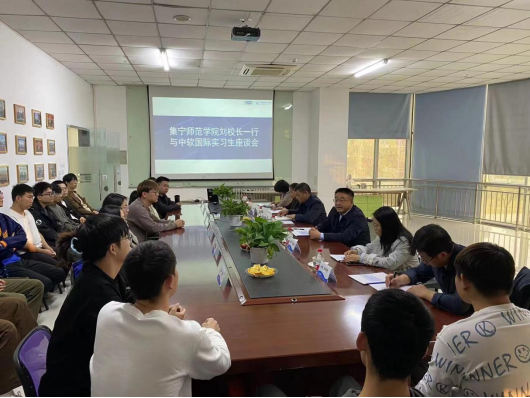 考察组在北京中软国际有限公司实训基地与正在实训的数据科学与大数据专业实习生进行了座谈。座谈会上,刘春详细询问了学生的生活和实训情况,表达了对实习生的关心和牵挂,勉励同学们要勤奋学习,要有吃苦精神,在实习实训岗位上不断提高自己,为社会多作贡献。李景杰希望同学们在保护好自己的同时,珍惜同学间的友情学到真本领。实习生介绍了实习以来的工作、生活及学习情况,同学们纷纷表示在实习过程中锻炼了专业技能、人际交往和沟通协调能力,认识到自身的不足和缺陷,表示一定不辜负学校的期望,努力将所学的专业知识运用到实际工作中,力争以骄人的业绩报答母校、回报社会。