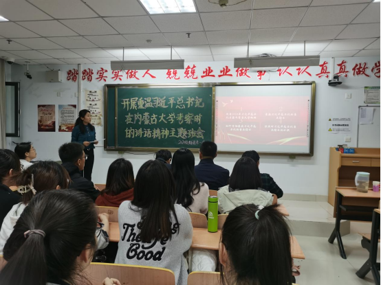 2020级物理学一班班主任弓美桃带领大家重温习近平总书记在内蒙古大学考察时对大学生的谆谆教诲、殷切嘱托,同学们谈了自己的感想和体会。
