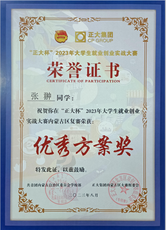 89支团队在内蒙古赛区复赛中获得优秀方案奖(部分证书)